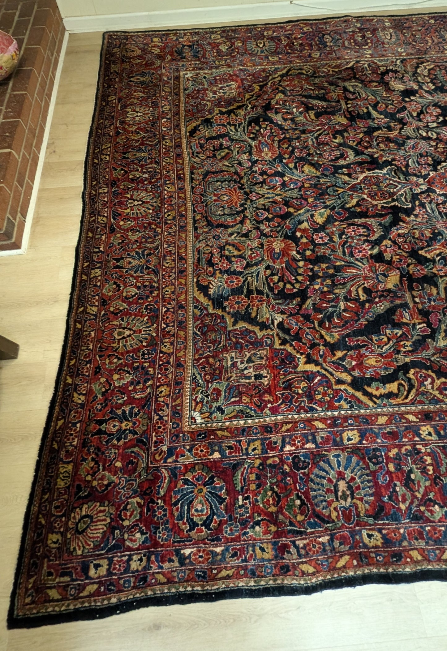 PENDING SALE - Antique Sarouk Persian Rug, 10x15 "Indigo Garden Palace"