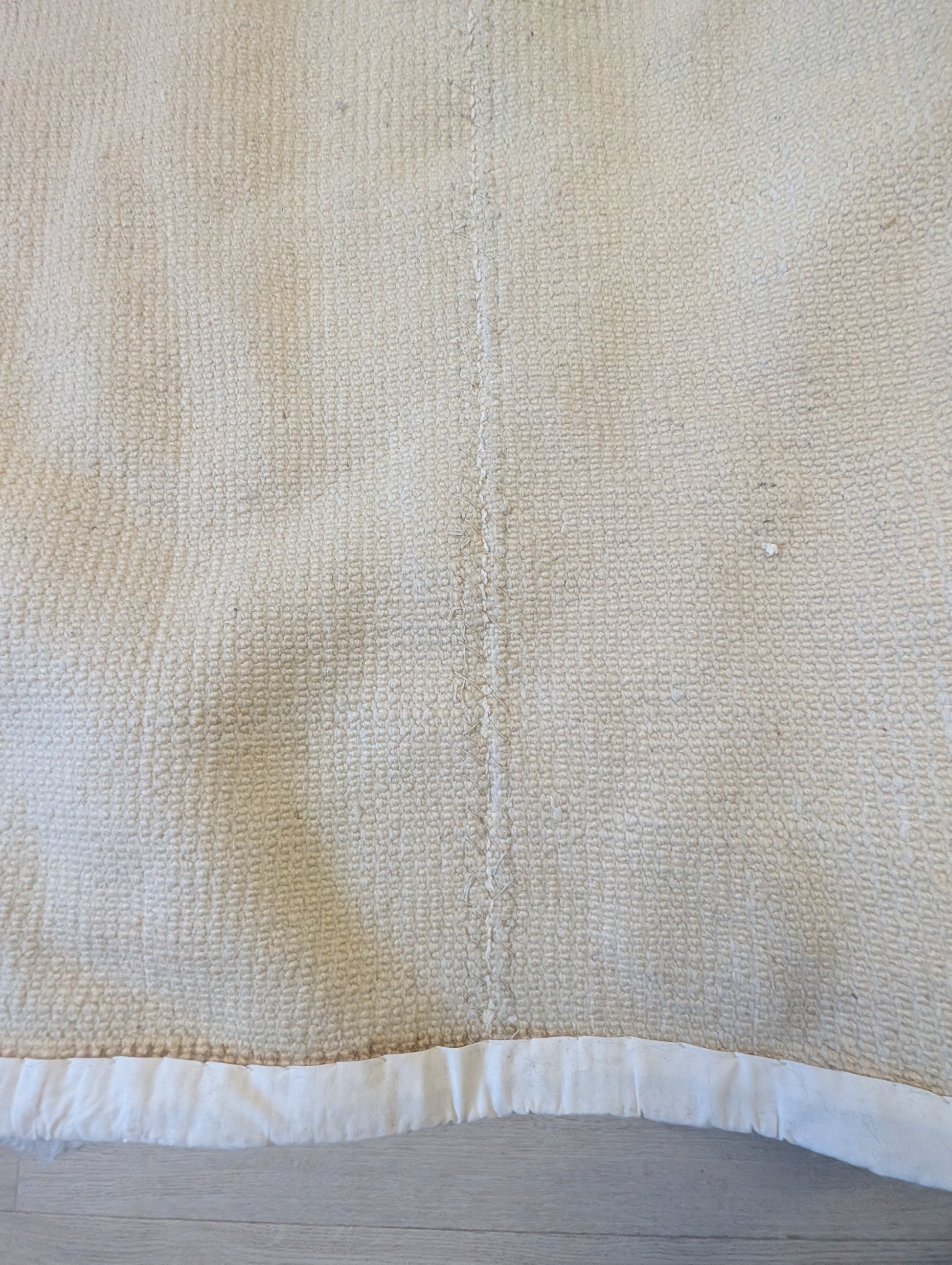 A center seam—typical for large Moroccan rugs—reflects its panel construction and adds a quiet, authentic detail to its story. The seam is visible only on the back side of the rug.